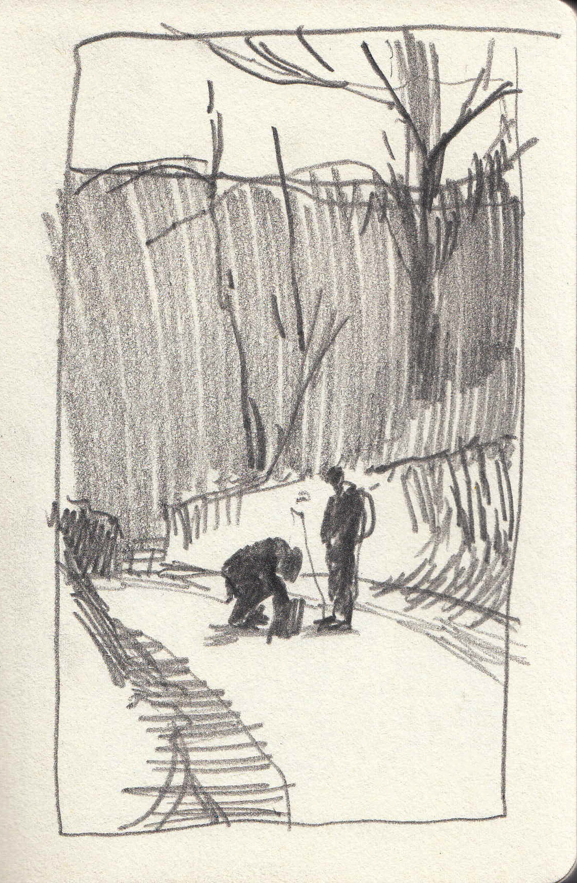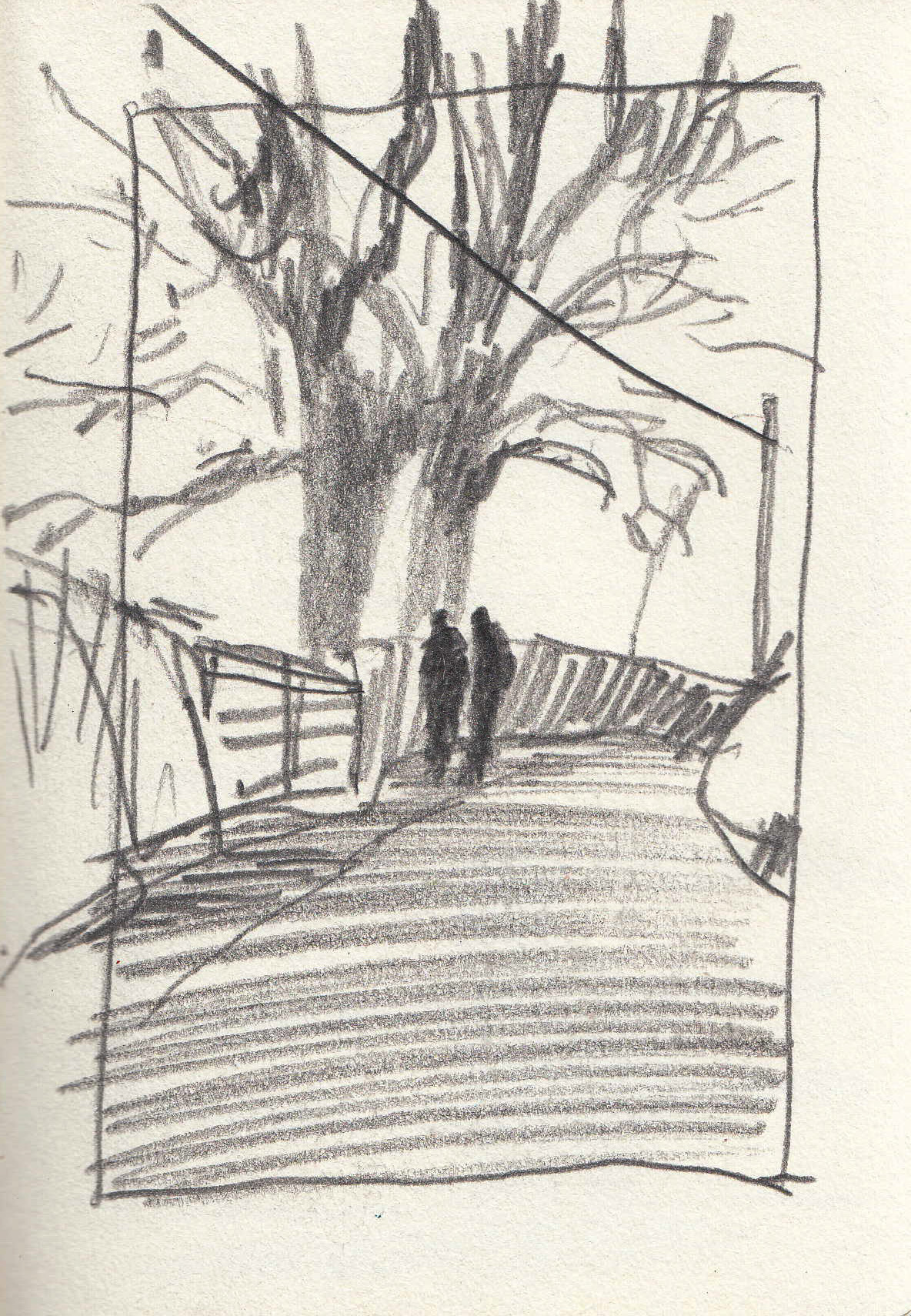 Drawings from a walk. I was lagging behind trying to record things in my sketchbook.