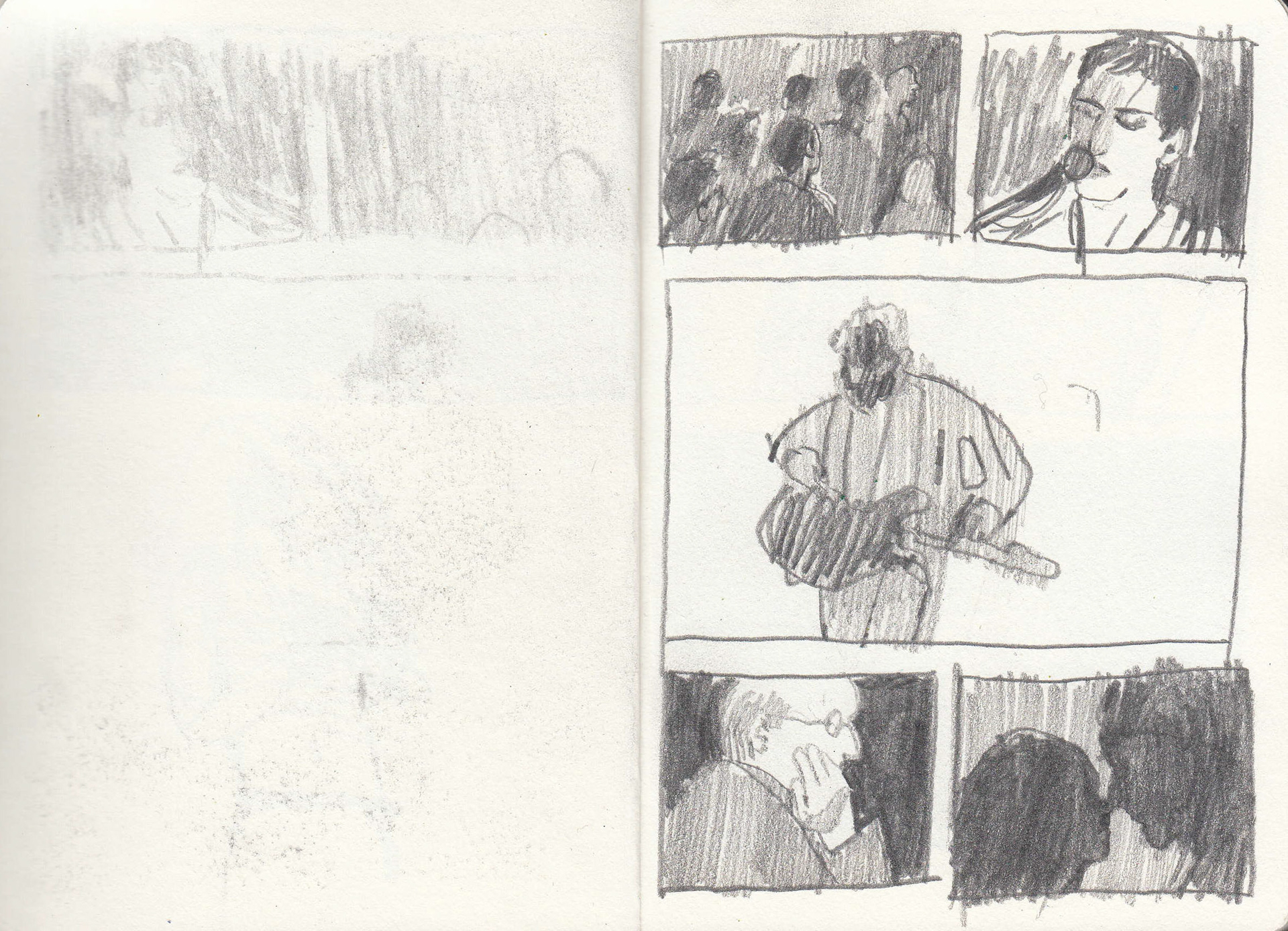 Location drawings made in one evening, at a gig in a local Kingston venue.